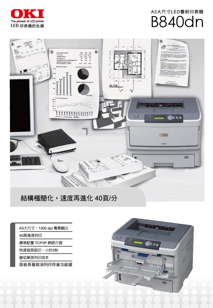 規格型號 【OKI】 B840n LED A3黑色雷射印表機