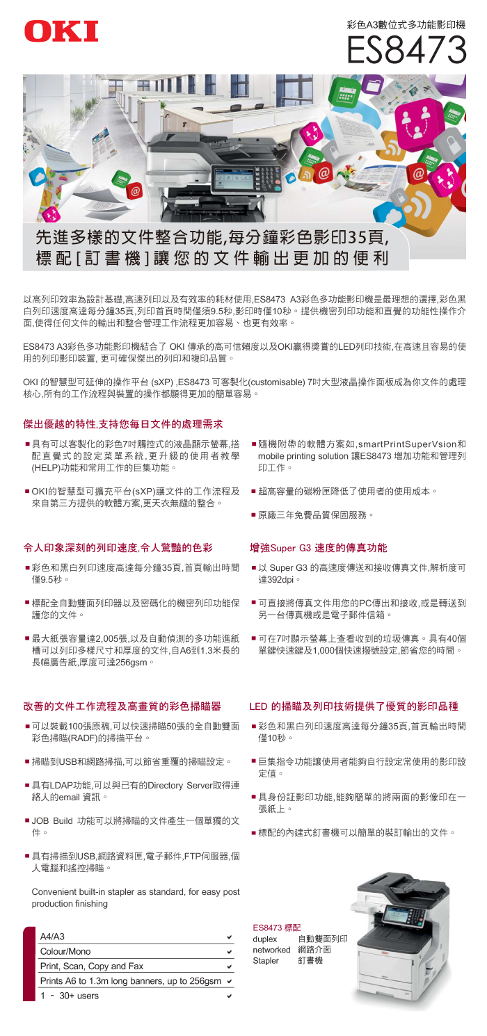 規格型號 【OKI】 ES8473dn_LED A3彩色雷射複合機